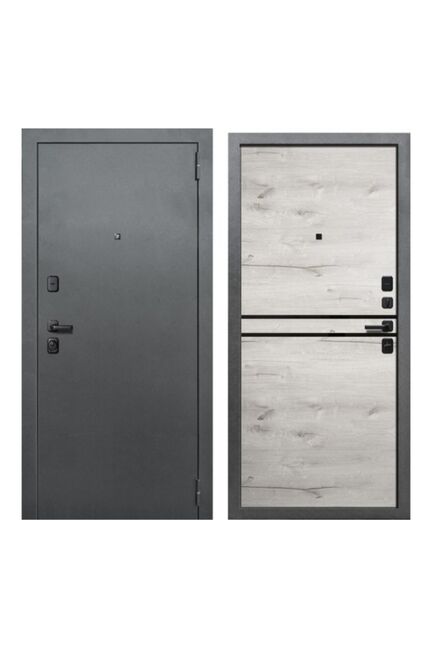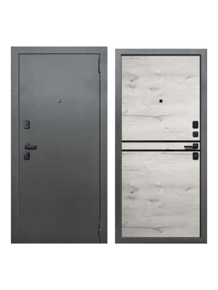Внешнее покрытие: порошково-полимерное. Толщина полотна 80 мм, глубина короба 105 мм. Толщина стали (полотно, короб): 1,2 мм. Внутренняя отделка: МДФ-панель 10 мм, молдинг чёрный. Наполнение: базальтовая плита. Уплотнение: 2 контура. Основной замок: Гардиан цилиндровый (ключ-вертушка). Дополнительный: Гардиан сувальдный (ключ-ключ). Металлическая дверь с эффектным двусторонним декором, усиленной защитой, отличной тепло- и шумоизоляцией для квартиры или дома.