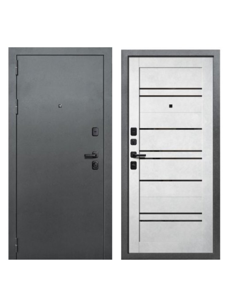 Прочная металлическая дверь с современной отделкой «Бетон снежный/фуаро» идеально подходит для квартиры или частного дома, сочетая надежную защиту и стильный внешний вид.