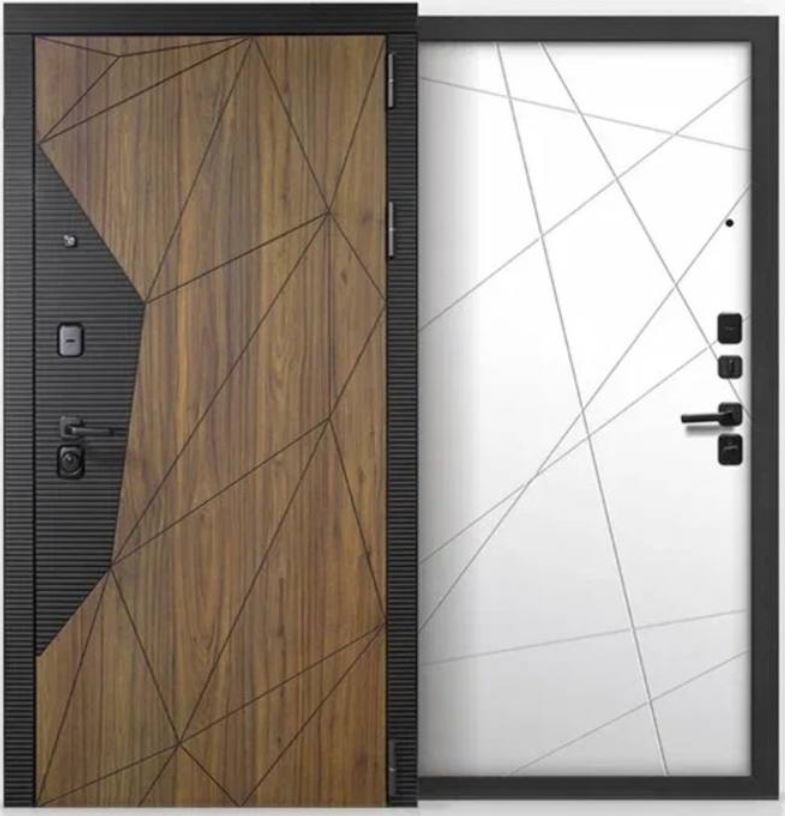 Толщина металла полотно, мм: 1,2 Толщина дверного полотна, мм: 90 Замок: Гардиан 3211, Гардиан 3001 Кол-во замков, шт: 2 Короб, мм: 115 Наличник: комплект фрезерованный ИНЬ-ЯНЬ, МДФ наличников Петли: Евро (подшипник закрытого типа), 3 шт Эффектный чёрный муар, надёжная сталь, тепло- и шумоизоляция. Лучший выбор для дома или квартиры – безопасность и стиль без компромиссов.