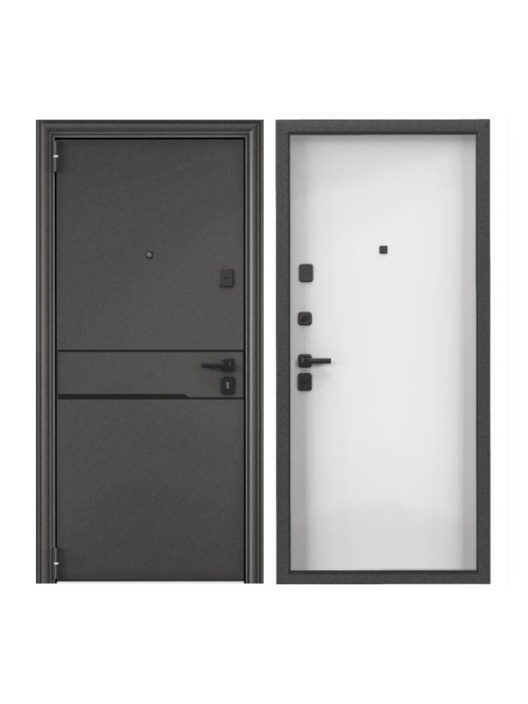 Полотно толщиной от 90 мм. Толщина металла на полотне 1,4 мм. Заполнение полотна- мин. плита высокой плотности и пенополистирол. Стальной нерж. порог. Толщина короба- 119,5мм. Толщина мет. на коробе- 1,4 мм. Два замка 4-го (высшего) класса взломостойкости - цилиндровый (Blockido C1- основной) и сувальдный (Border 3B 8-6- доп.). Два противосъёмных ригеля с петлевой стороны. Ночная задвижка. Бронинакладка. Магнитный уплотнитель. Металлическая дверь с левым открыванием, размером 860×2050 мм, усиленной защитой, стильной отделкой и отличной теплоизоляцией.