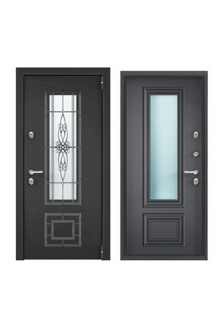 Тип внешней отделки: порошково-полимерное покрытие. Тип внутренней отделки: панель МДФ с ПВХ покрытием. Верхний замок: BORDER 3В 8-8Г/15, 4-го класса взломостойкости по ГОСТ 5089-2011. Нижний замок: Crit A30-4Л, 2-го класса вломостойкости по ГОСТ 5089-2011. Декоративные накладки на ключевину сувальдного замка с направляющими для ключа и подпружиненными шторками от продувания. Противосъемные ригели с петлевой стороны полотна 2 шт. Ночная задвижка. Металлическая дверь, терморазрыв, отличная тепло- и шумоизоляция, защищает от взлома, стильная отделка, размер 950×2050 мм, для дома и офиса.