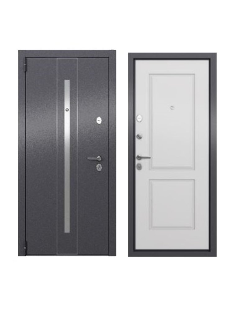- Утеплитель: пенополистирол;- Петли разнесенные;- ТРОЙНОЙ контур резинового уплотнителя (2 на полотне и 1 на коробе);- Противосъемные ригели - 2 шт. с петлевой стороны;- Механизм регулировки притвора;- Глазок;- Ночная задвижка;- Ручка Стальная входная дверь: устойчива к взлому, тепло- и шумоизоляция, стильное оформление — идеальна для квартиры, дома или офиса, легко монтируется.