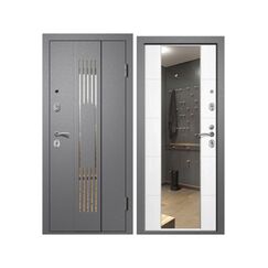 Толщина полотна/глубина короба: 100/115 Внутренняя отделка: МДФ-панель 10 мм, зеркало с фацетом Наполнение: Базальтовая плита Уплотнение: 3 контура Замок основной/дополнительный: Guardian цилиндровый (ключ-вертушка)/сувальдный (ключ-ключ) Металлическая дверь с зеркалом, три контура уплотнения, антивандальная отделка, отличная тепло- и шумоизоляция, стильный дизайн.
