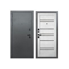 Внешнее покрытие: порошково-полимерное. Толщина полотна 100 мм, глубина короба 115 мм. Толщина стали (полотно, короб): 1,2 мм. Внутренняя отделка: МДФ-панель 16 мм, вставки Lacobel черное. Наполнение: базальтовая плита. Уплотнение: 3 контура. Основной замок: Гардиан цилиндровый (ключ-вертушка). Дополнительный: Гардиан сувальдный (ключ-ключ). Надежная металлическая дверь 860L с двухконтурным уплотнением, стильной отделкой "Бетон снежный" и звукоизоляцией, для вашего дома или квартиры.
