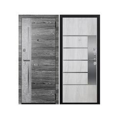 Внешнее покрытие порошково-полимерное. МДФ-панель 16 мм комбинированная. Толщина полотна 90 мм, глубина короба 115 мм, вес двери 102 кг. Внутрення отделка: МДФ-панель 16 мм+зеркало с еврокромкой. Наполнение: базальтовая плита. Уплотнение: 3 контура. Основной замок: Гардиан (цилиндр ШТОК), независимая задвижка с вертушком. Дополнительный замок: Гардиан сувальдный). Европетли 3 шт. Высокопрочная входная дверь с утеплением, антивандальным покрытием, зеркалом и стильной отделкой – для защиты и уюта вашего дома.