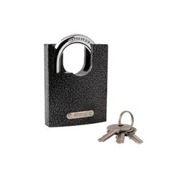 Замок с закалённой дужкой 75 мм, защищён от коррозии, подходит для улицы и помещений, комплект из трёх ключей, ресурс 10 000 циклов.