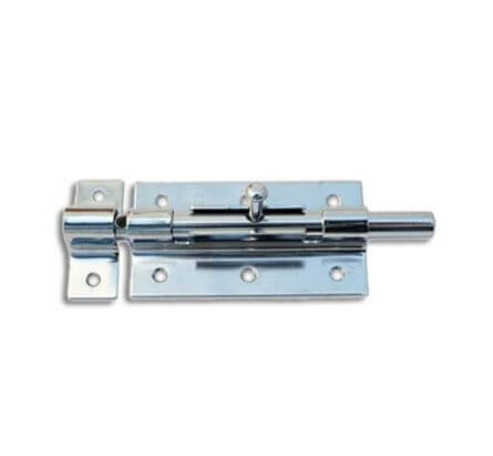Засов 120 мм из стали с хромированным покрытием для надёжной фиксации дверей и окон, устойчив к коррозии, простой монтаж и приятный внешний вид.