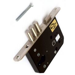 Рекомендован для установки в входные двери. Тип крепления: лицевая планка. Цилиндрические ригели - 3 шт. Вылет ригеля 24 мм, диаметр ригеля 16 мм. Удаление ключевого отверстия (Backset) 60 мм. Цилиндрический механизм секретности. Евроцилиндр. Классическая универсальная защёлка. Межосевое расстояние 85 мм. Покрытие лицевой планки: гальваника. Универсальный врезной замок, прочная стальная конструкция, три ригеля, евроцилиндр, защита от взлома, подходит для металла и дерева.