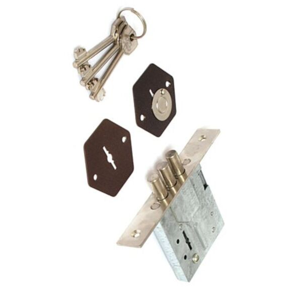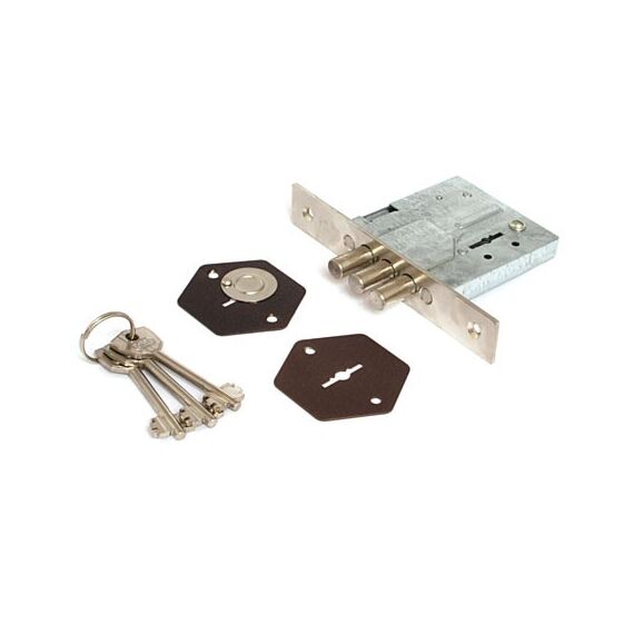 Рекомендован для установки в входные двери Да Рекомендован для установки в межкомнатные двери Да Тип крепления Лицевая планка Тип ригелей Цилиндрические Количество ригелей 3 Вылет ригелей 21 мм Диаметр ригеля 11 мм Удаление ключевого отверстия (Backset) 48.5 мм Тип механизма секретности Сувальдный с двойной бородкой Количество ключей 3 шт Дополнительный механизм секретности Нет Защелка Отсутствует Автоматическое запирание Не автоматическое Количество точек запирания 1 Дополнительное запирание изнутри Нет Покрытие лицевой планки Гальваника Цвет лицевой планки Хром Сувальдный врезной замок: надежность, стойкость к взлому, универсален для дверей, повышает безопасность вашего дома или офиса.