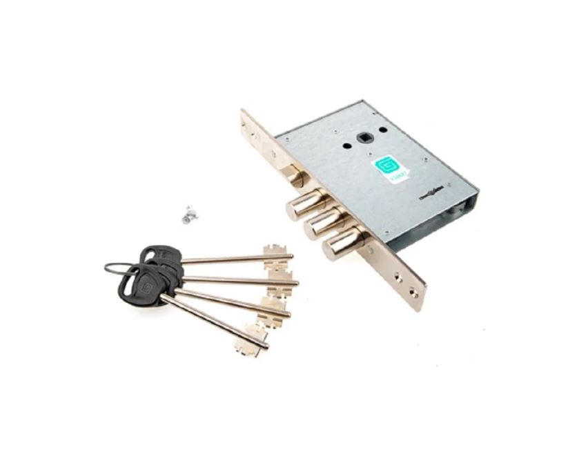 Надёжный врезной замок с высокой взломостойкостью, комплект ключей, простая установка, универсален для деревянных и металлических дверей.