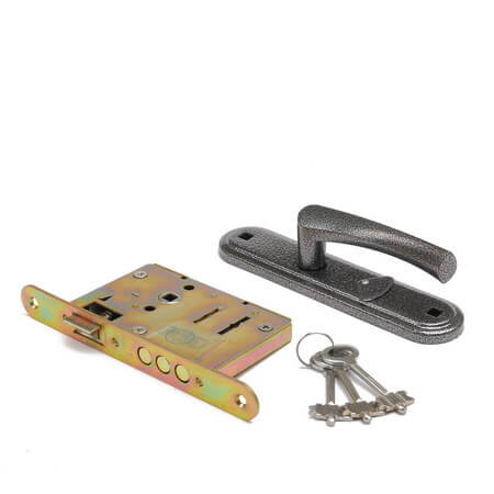 Сувальдный врезной замок, 4 стальных ригеля, универсальный монтаж, серебристое покрытие, высокий уровень защиты для дверей.