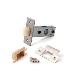 Бесшумная врезная защёлка с пластиковым язычком, устойчива к износу, подходит для межкомнатных дверей, легко устанавливается и не повреждает коробку.