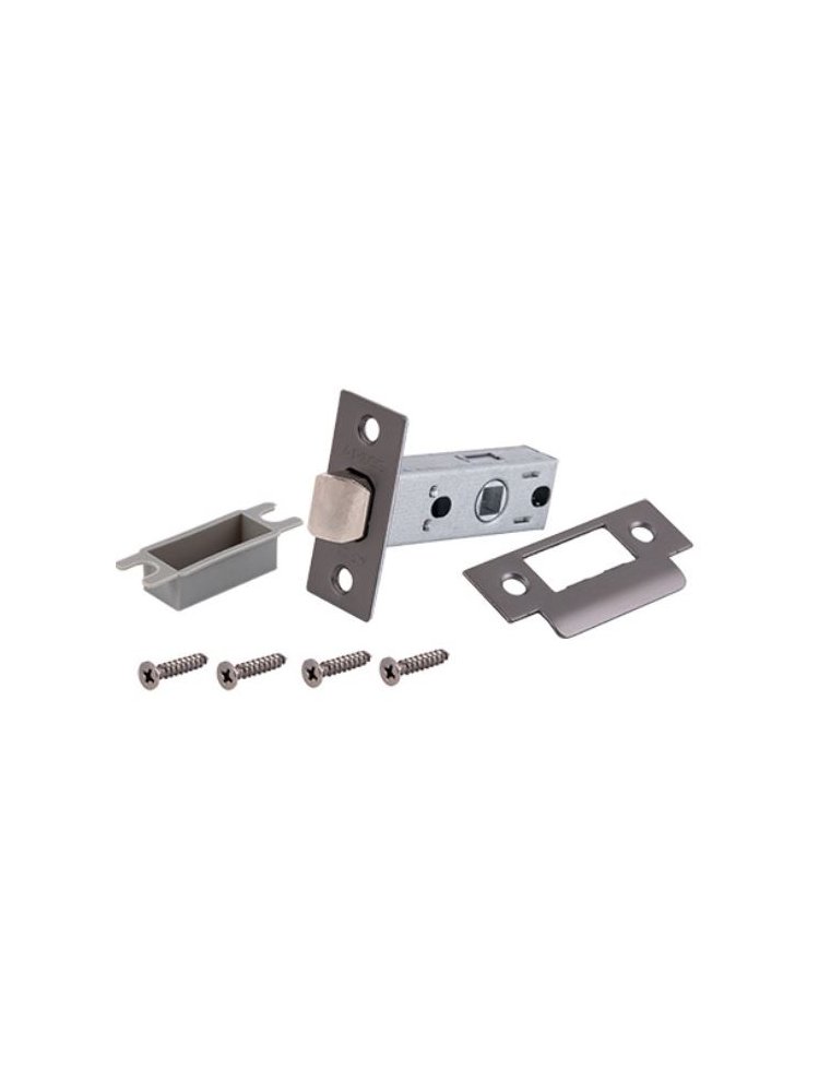 Классические защёлки с металлическим язычком без фиксации. Предназначены для межкомнатных дверей без запирания. Устанавливаются в МК деревянные двери совместно с дверными ручками. Врезная защёлка с металлическим язычком в цвете графит для межкомнатных дверей, надёжна, проста в установке, выдерживает частое использование.