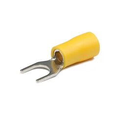Изолированные вилочные наконечники 4-6 мм², жёлтые. Обеспечивают надёжное и безопасное соединение проводов. В упаковке 25 штук.