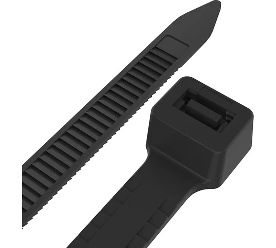 Хомут нейлоновый (кабельная стяжка) «Тройной замок» предназначен для крепления или обвязки в жгут кабелей и проводов, крепления гибких гофротруб, а также других предметов к несущей поверхности или для соединения между собой. Используется при проведении электромонтажных работ, при монтаже структурированных кабельных систем, для бытовых нужд, а также в других отраслях народного хозяйства. Представляет собой гибкую полоску из нейлона высокой прочности (полиамид-6,6) с двусторонним полотном с зубчиками и новым замком с тремя точками контакта на конце. Благодаря новой конструкции имеет прочность минимум на 30 % больше по сравнению с аналогами. Полиамид-6,6 — кристаллизующийся конструкционный материал, имеющий высокую твердость и механическую прочность, отличающийся высокими электроизоляционными свойствами. Прочные нейлоновые хомуты 3,6×150 мм с тройным замком, для надёжной фиксации кабеля и труб, устойчивы к УФ и холоду, упаковка 100 шт.