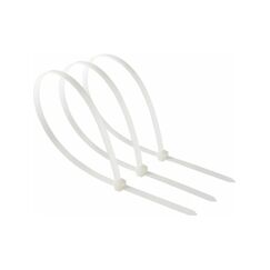 Белые нейлоновые стяжки 2,5×200 мм для крепления кабелей и жгутов. Прочность, удобство монтажа, рабочий диапазон температур –40…+85°C, 100 шт.
