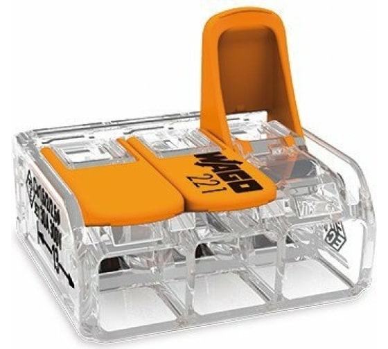 Клемма 3-х проводная (0,5-6мм) с рычажком 221-613 (упак. 3 шт)