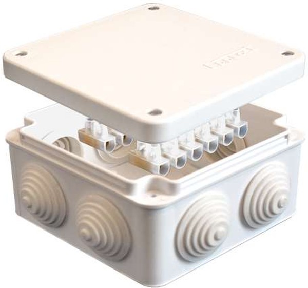 Электрическая распределительная коробка представляет собой контейнер для электрических соединений, основной целью которого является сокрытие разветвлений проводов. Удобная коробка 105×105×56 мм с клеммной группой и защитой IP54 — безопасный монтаж и надежное соединение в любых условиях.