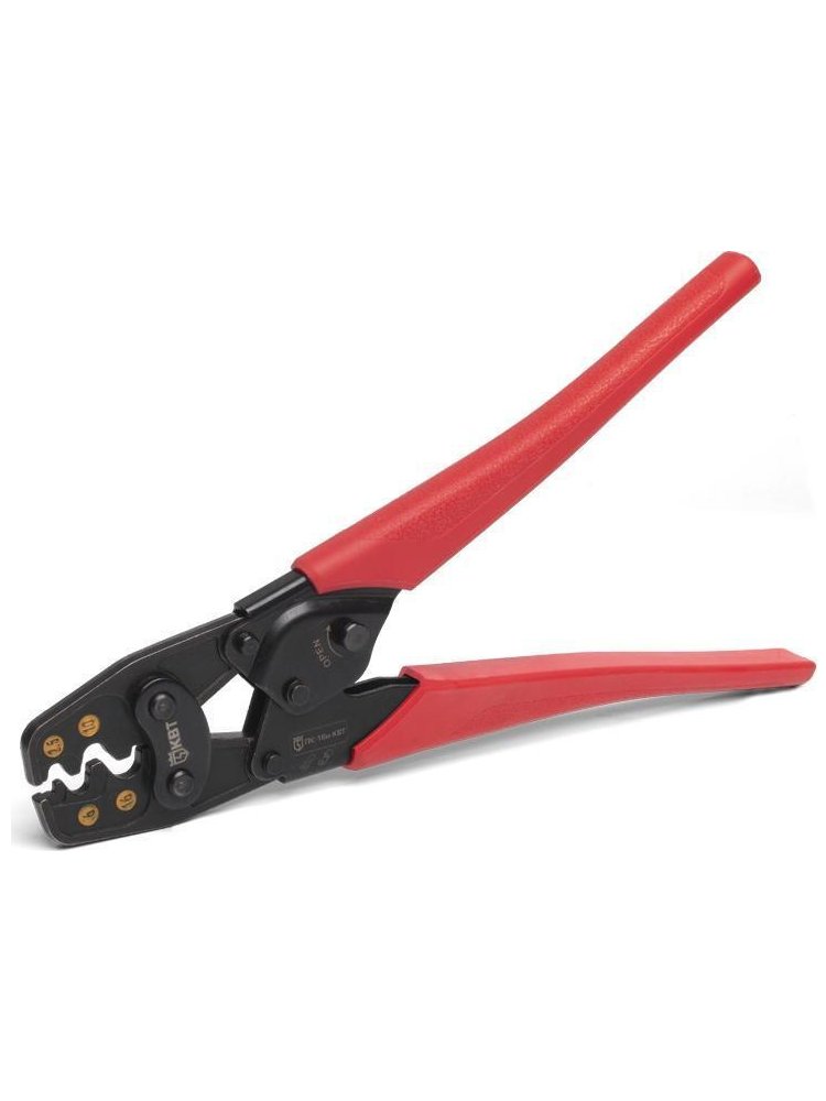 Инструмент для опрессовки изолированных и неизолированных наконечников, а также разъёмов. Пресс-клещи, оснащенные храповым механизмом, обеспечивают блокировку обратного хода и полный цикл опрессовки. Применяются для работ по обжимке многожильных кабелей и проводов. Степень опрессовки определяет механическую прочность и электрическое сопротивление контактного соединения. Инструмент используют для соединения наконечников на автомобильной проводке, для оконцевания кабеля перед подключением к электрощиту или потребителю и т.д.