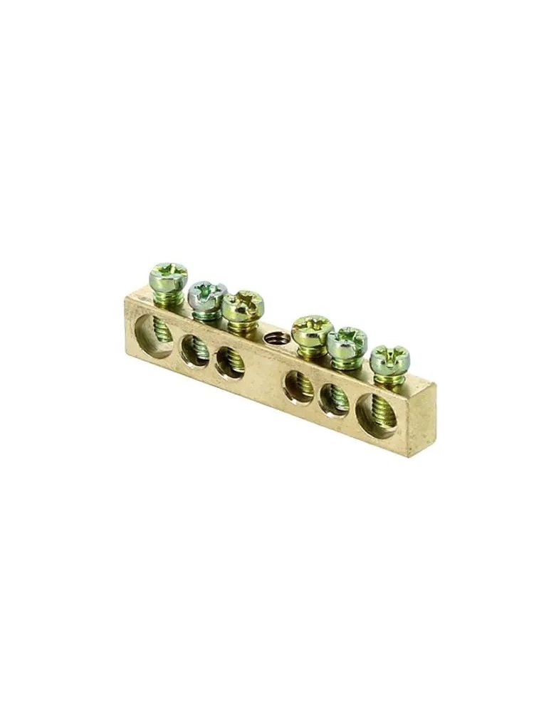 Нулевая шина 6*9 мм, 6 групп, латунь, крепление по центру, для соединения нулевых проводников в щитах, компактная и устойчивая к коррозии.