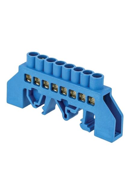 Латунная нулевая шина 8х12 мм на 8 клемм, монтаж на DIN-рейку, для надежного объединения нулевых проводников в электрощите.