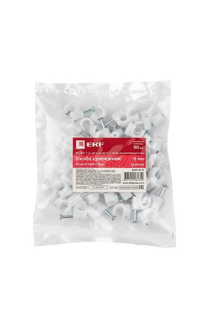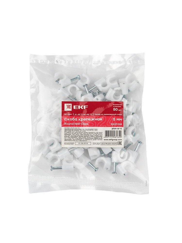 Ищете надёжное решение для крепления электрических проводов и кабеля? Скоба крепежная круглая 5 мм (упаковка - 50 шт., артикул plcn-sr-5) — идеальный помощник при электромонтаже в квартире, офисе, мастерской и на строительных объектах. Качественный пластик устойчив к перепадам температуры и не растрескивается, а закалённый гвоздь обеспечивает прочную фиксацию даже в бетоне или кирпиче.