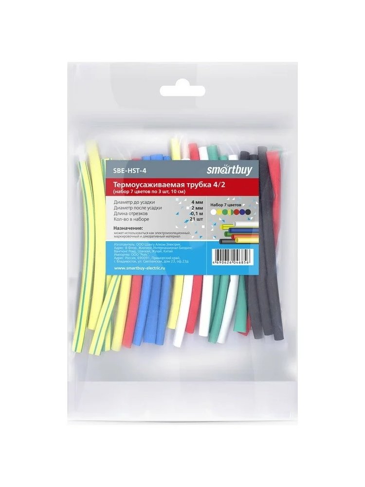 Практичное решение для надежной изоляции, маркировки и соединения проводов в электромонтаже и ремонте! Термоусаживаемые трубки 4/2 мм набором из 7 ярких цветов (по 3 шт, длина 10 см, артикул SBE-HST-4) идеально подходят для быстрой идентификации и защиты контактов, предотвращают короткие замыкания и коррозию. Используйте в быту, строительстве, при установке электрооборудования, ремонте автомобилей и бытовой техники.