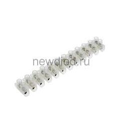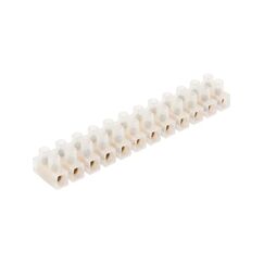 Винтовая клеммная колодка на 12 контактов, 16А, для проводов 4–12 мм², из прочного белого полиэтилена, обеспечивает надёжное электрическое соединение.