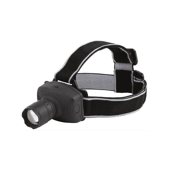 Яркий налобный фонарь с тремя режимами работы, защитой от влаги и питанием от батареек AAA — идеальное решение для стройки и монтажа.