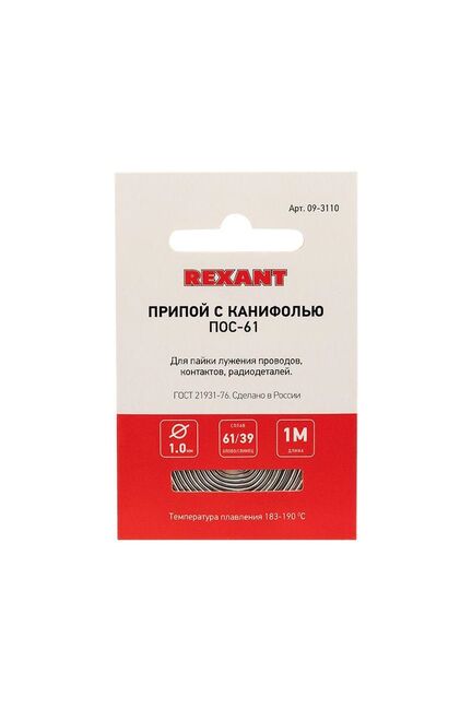 Припой d1мм с канифолью (олово 61% свинец 39% флюс 2.2%) спираль 1м REXANT в Амурск