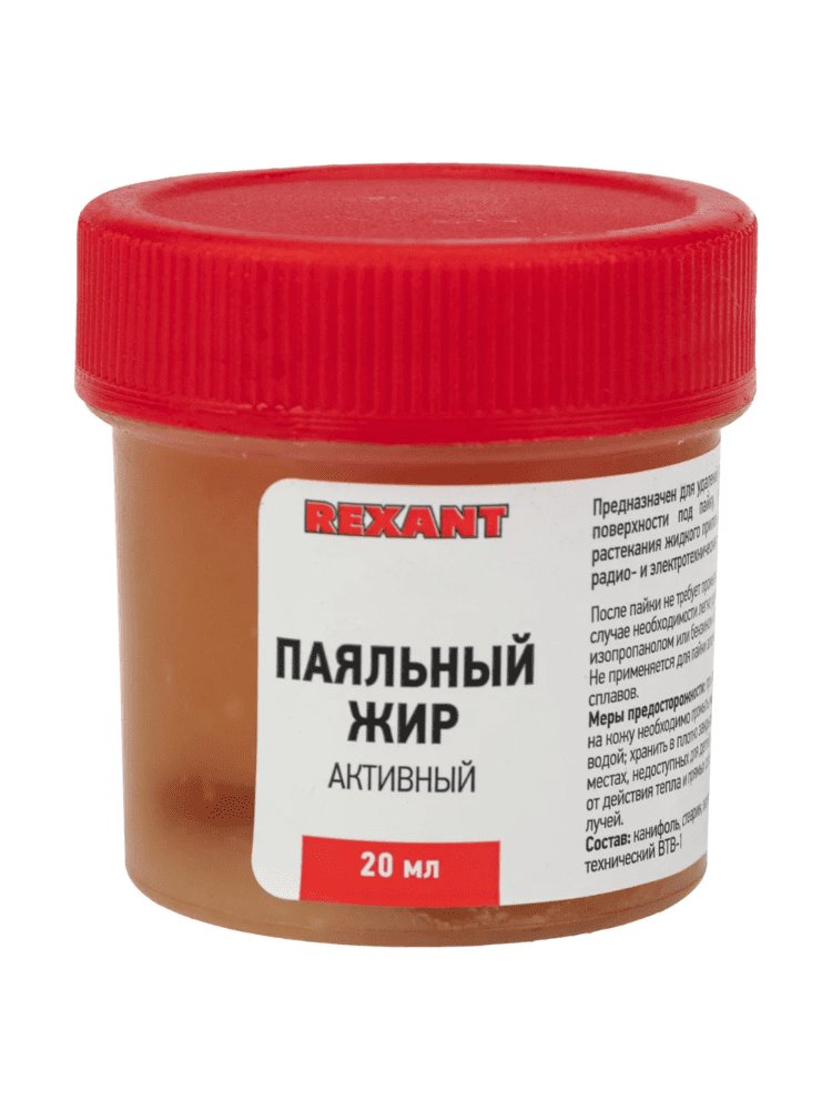 Идеальный выбор для качественных пайки и лужения — активный паяльный жир 20г. REXANT обеспечивает прочное, равномерное соединение металлических поверхностей, подходит для работы с медью, латунью, сталью и их сплавами. Применим в электромонтаже, сантехнических сборках, ремонте электроники и бытового оборудования.