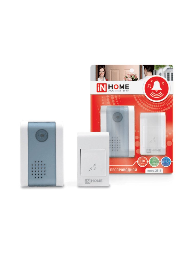 Звонок беспроводной ЗБ-2 32 мелодии 120м с цифр. кодир. с кнопкой БЕЛО-СЕРЫЙ IN HOME в Амурск