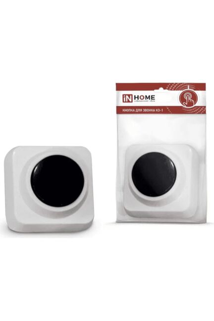 Кнопка звонка КЗ-1 IN HOME из прочного пластика, защита IP44, для проводных звонков до 250 В. Простая установка, универсальный дизайн.