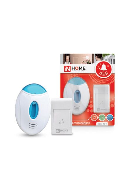 Звонок беспроводной ЗБ-3 32 мелодии 120м с подсветкой цифр. кодир. с кнопкой БЕЛО-ГОЛУБОЙ IN HOME