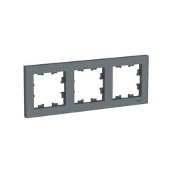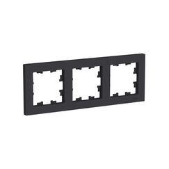 Эстетичная рамка на 3 модуля в горизонтальном исполнении, цвет "антрацит", ударопрочный пластик, для современных интерьеров и быстрой установки.