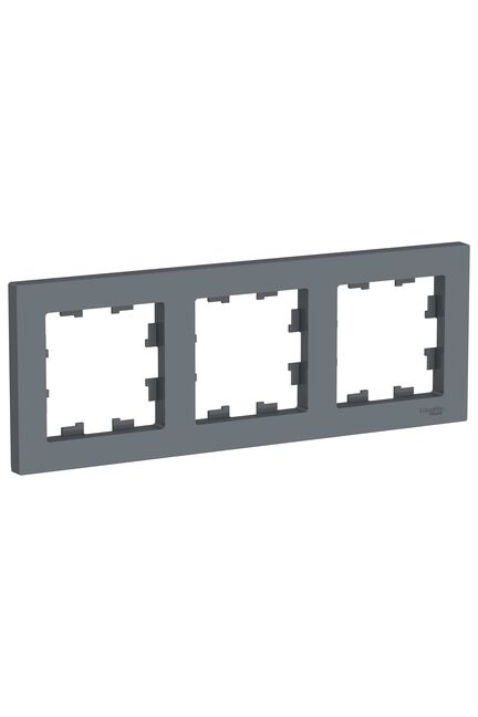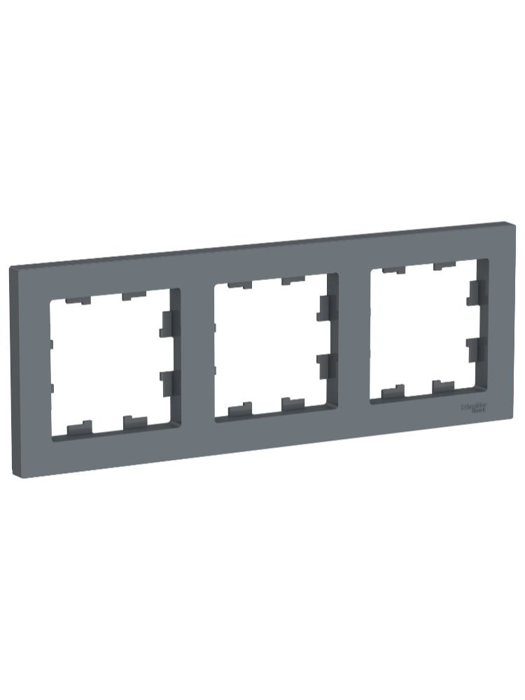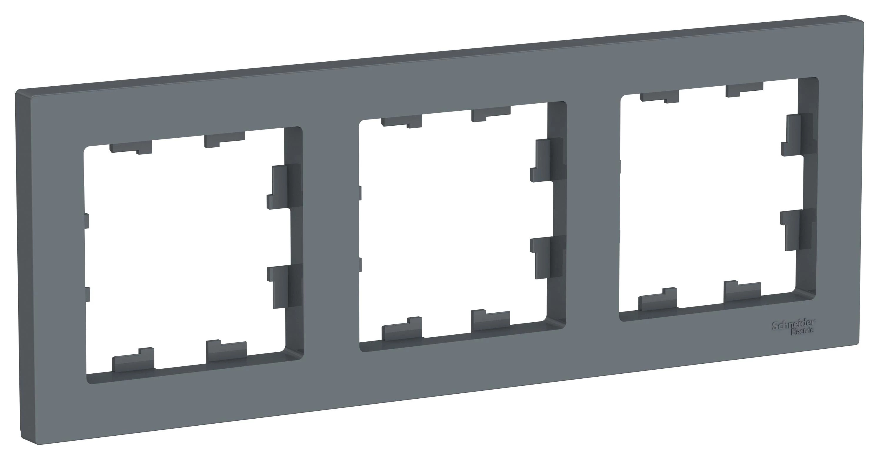 Стильная 3-постовая рамка насыщенного грифельного цвета для скрытого монтажа и надежной фиксации механизмов серии AtlasDesign SE.