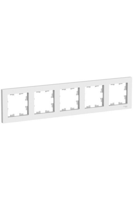 Практичная белая рамка на 5 постов для установки электрофурнитуры, устойчива к износу, проста в уходе, идеально для любого интерьера.