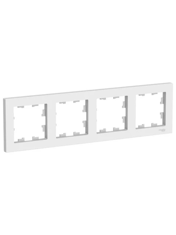 Рамка на 4 поста, современный дизайн, белый цвет, прочный пластик, легкий монтаж и уход, совместима с AtlasDesign. Для жилых и офисных помещений.