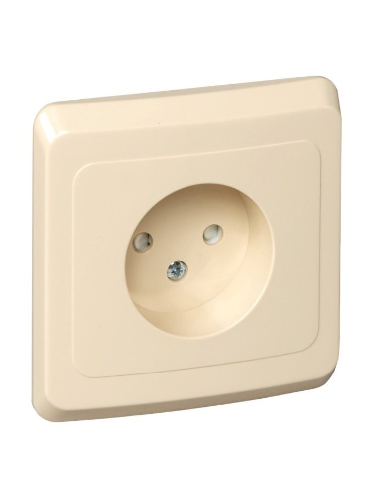 Универсальная розетка 16А с защитными шторками, скрытого монтажа, кремового цвета для безопасности и удобства в домашних и офисных помещениях.