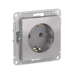 Современная розетка с заземлением, выдерживает 16А, скрытая установка, устойчивый алюминиевый корпус и защита, для безопасного использования.