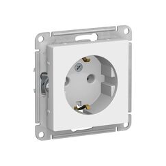 Белая розетка с заземлением на 16А, скрытый монтаж, прочный механизм, надежная электробезопасность и универсальный дизайн для любых помещений.