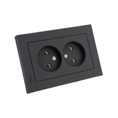 Компактная двойная розетка без заземления со шторками, 16А, грифель. Безопасна для детей, устойчива к износу и отлично впишется в современный интерьер.