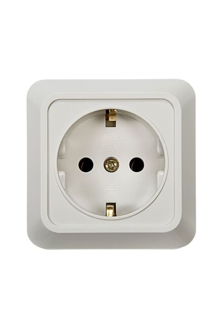 Надежная розетка с заземлением, для открытого монтажа, устойчива к износу, проста в установке, подходит для всех типов сухих помещений.