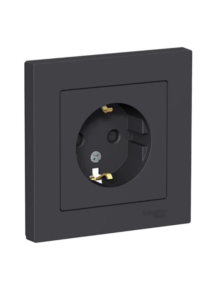 Розетка 1-постовая с з/к со шторками 16А моноблок, карбон AtlasDesign SE