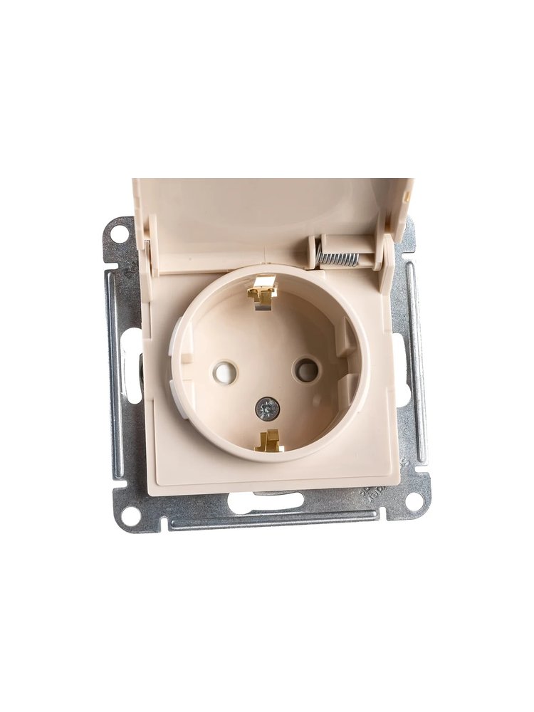 Розетка 1-постовая с з/к со шторками с крышкой 16А механизм, бежевая AtlasDesign SE