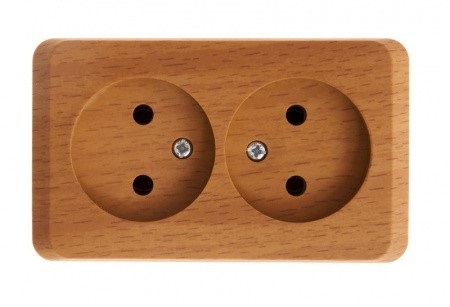 Двойная розетка 16А без заземления, износостойкий корпус бук, накладной монтаж — отличное решение для дома, офиса и мастерской.