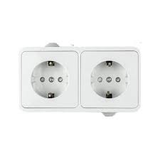 Розетка 2-постовая ОУ с з/к полугерметичная со шторками белая AQUA 3123 IP44 IN HOME