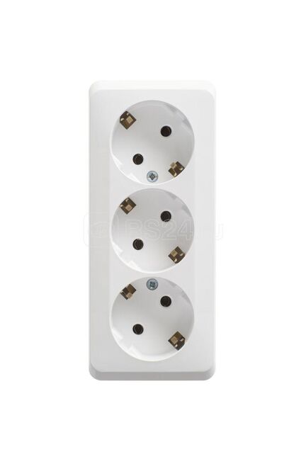 Трёхместная розетка 16А белая, открытый монтаж, без заземления. Для надёжного подключения бытовых приборов и инструментов дома, на даче или в офисе.