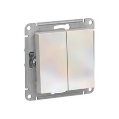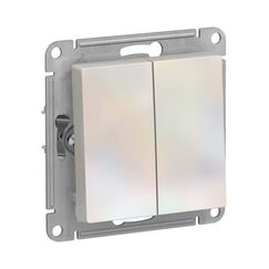 Двойной выключатель с элегантной жемчужной отделкой, скрытый монтаж, высокая износостойкость и удобство управления двумя зонами света.