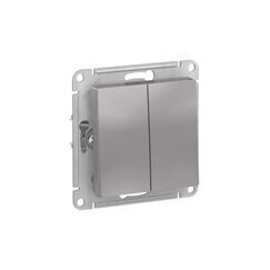 Двухклавишный механизм для управления двумя линиями освещения, стильный алюминиевый цвет, надежность, удобство монтажа, долговечность.
